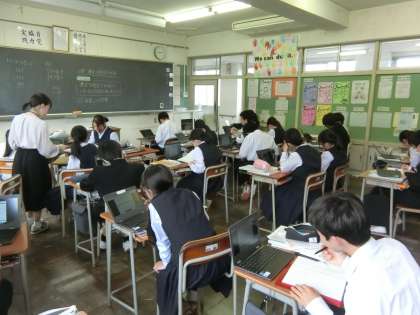 2年生の授業の様子を紹介します。 【写真上:英語】 【写真中:保健体育】 【写真下:数学】