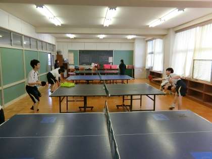 【写真上:卓球部】 【写真中:女子バドミントン部】 【写真下:ソフトテニス部】