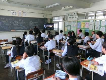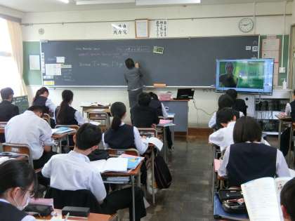 2年生の授業の様子を紹介します。 【写真上:社会】 【写真下:英語】