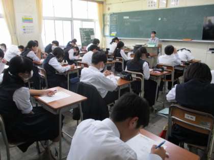 1年生の授業の様子を紹介します。 【写真上:社会】 【写真中:技術】 【写真下:数学】