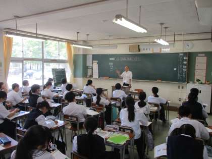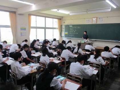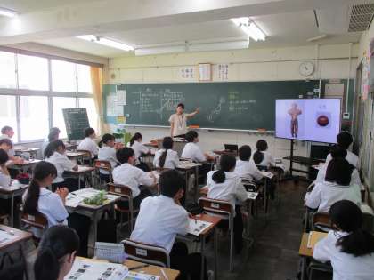 1年生の授業の様子を紹介します。 【写真上】:理科 【写真中】:社会 【写真下】:数学