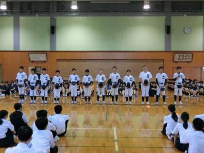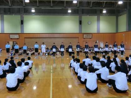 12日(水)部活動壮行会 その1 公開日 2024/06/13 更新日 2024/06/13 生徒会 富山市中学校総合選手権大会と富山市民体育大会の壮行会を行いました。 【写真上:選手入場】 【写真中:決意表明(野球部)】 【写真下:決意表明(ソフトテニス部)】