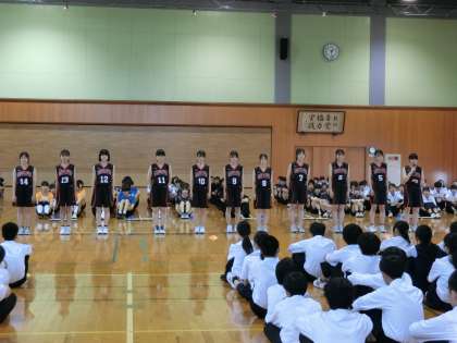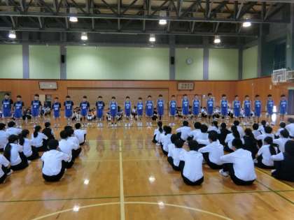 12日(水)部活動壮行会 その2 公開日 2024/06/13 更新日 2024/06/13 生徒会 富山市中学校総合選手権大会と富山市民体育大会の壮行会を行いました。 【写真上:決意表明(男子バスケットボール部)】 【写真中:決意表明(女子バスケットボール部)】 【写真下:決意表明(バレーボール部)】
