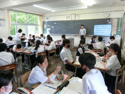 2年生の授業の様子を紹介します。 【写真上:技術】 【写真中:保健体育】 【写真下:英語】