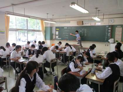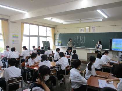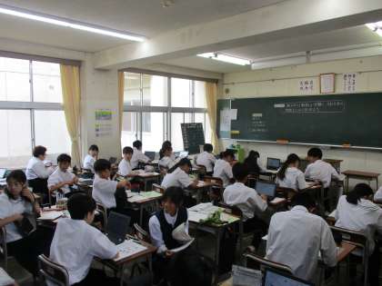1年生の授業の様子を紹介します。 【写真上】:家庭科 【写真中】:理科 【写真下】:英語