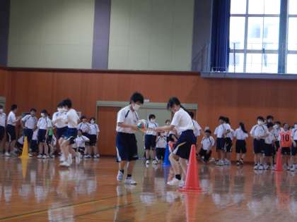 ○ 障害物リレー、ボール運びリレーの様子です。