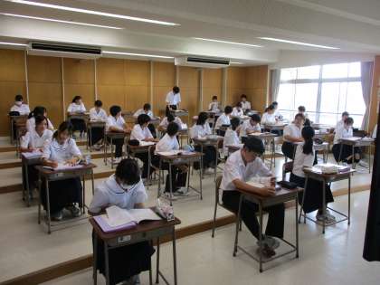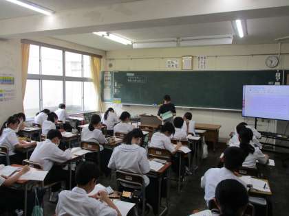 1年生の授業の様子を紹介します。 【写真上】:美術 【写真中】:音楽 【写真下】:数学