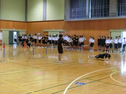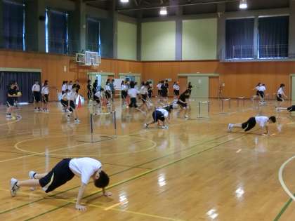 18日(木)部活動合同トレーニング 公開日 2024/07/19 更新日 2024/07/19 東部中学校の様子 本日から1学期保護者懇談会です。 体育館では、陸上競技部、バスケットボール部(男女)、バドミントン部(男女)、女子バレーボール部が合同トレーニングを行いました。