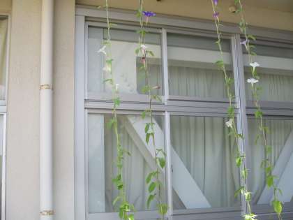 8月1日(木)今日から8月 公開日 2024/08/01 更新日 2024/08/01 東部中学校の様子 今日から8月。夏休みが始まり1週間が過ぎました。 正面玄関横にあるプランターの朝顔は大きく成長し たくさん花を咲かせています。