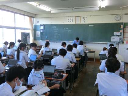 3年生の授業の様子を紹介します。 【写真上:国語】 【写真中:英語】 【写真下:理科】