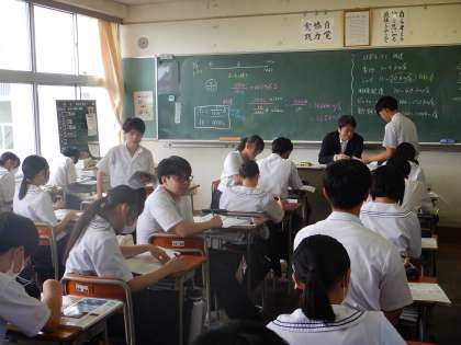 3年生の授業の様子を紹介します。 【写真上:保健体育】 【写真中:数学】 【写真下:理科】