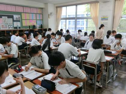 2年生の授業の様子を紹介します。 【写真上:英語】 【写真中:道徳】 【写真下:保健体育】