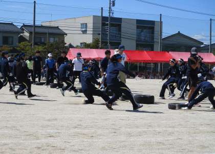 24日(火)体育大会予行 公開日 2024/09/24 更新日 2024/09/24 東部中学校の様子 タイヤ引き、騎馬戦、綱引きも一度実際に対戦し、練習しました。 競技や係の仕事を行う上での注意点を確認し、 体育大会当日をよりよいものにしていきたいと思います。