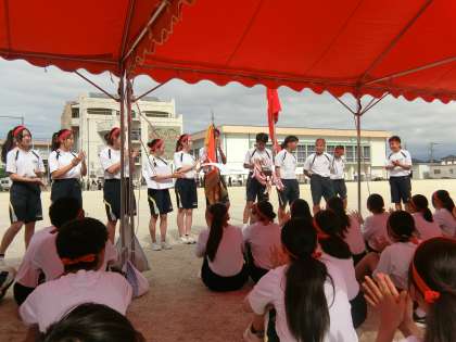 朱雀団の解団式の様子です。 リーダーが一人ずつ、団員に話をしました。