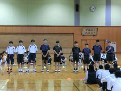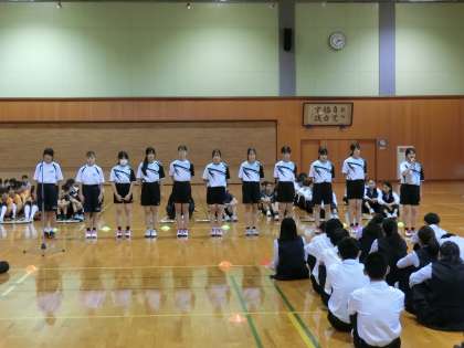 8日(火)部活動壮行会 その3 公開日 2024/10/09 更新日 2024/10/09 生徒会 富山市中学校新人大会と県ジュニアオリンピック中学校陸上競技大会の壮行会を行いました。 【写真上:決意表明(男子バドミントン部)】 【写真中:決意表明(女子バドミントン部)】 【写真下:決意表明(剣道部)】