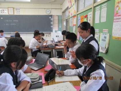 総合的な学習の時間 公開日 2024/10/16 更新日 2024/10/16 2学年 2学年では、5限の総合的な学習の時間に11月に行う金沢校外学習のコースづくりをしました。各班で見学したいところや移動手段等を調べ、ワークシートにまとめました。