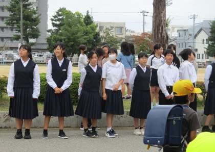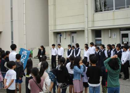 24日(木)小中連携あいさつ運動(東部小) 公開日 2024/10/24 更新日 2024/10/24 東部中学校の様子 本日、東部小学校の児童玄関前で、小学校の児童会と合同で あいさつ運動を行いました。