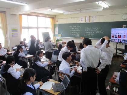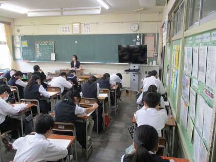 1年生の授業の様子を紹介します。 【写真上】:技術 【写真中】:英語 【写真下】:数学