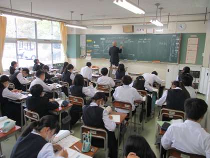 1年生の授業の様子を紹介します。 【写真上】:理科 【写真中】:英語 【写真下】:美術