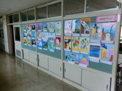 【写真下:3年美術「名画を私流にデザインしよう」】