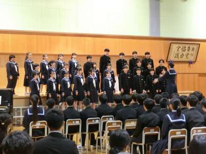 2日(土)合唱コンクール【3学年】 公開日 2024/11/02 更新日 2024/11/02 東部中学校の様子 【写真上:31H Story】 【写真中:32H 手紙 〜拝啓 十五の君へ〜】 【写真下:33H いつまでも】