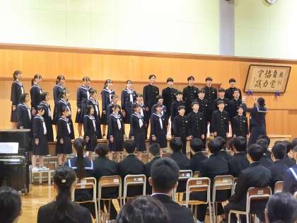 2日(土)合唱コンクール【3学年】 公開日 2024/11/02 更新日 2024/11/02 東部中学校の様子 【写真上:31H Story】 【写真中:32H 手紙 〜拝啓 十五の君へ〜】 【写真下:33H いつまでも】