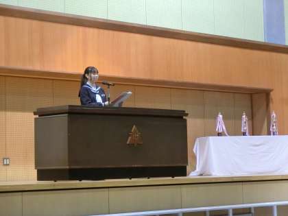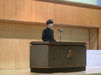 【写真上:結果発表】 【写真中:表彰】 【写真下:生徒会長あいさつ】