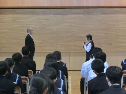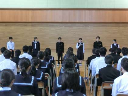 6日(水)学年集会・結団式【2学年】 公開日 2024/11/06 更新日 2024/11/06 2学年 後期学年生徒会の紹介と金沢校外学習の結団式を行いました。 また、係打ち合わせを行いました。 【写真上:学年生徒会の紹介】 【写真中:生徒代表のあいさつ】 【写真下:団長のあいさつ】