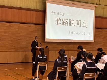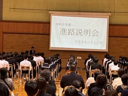 8日(金) 進路説明会【3学年】 公開日 2024/11/08 更新日 2024/11/08 3学年 本日3学年は進路説明会を行いました。 いよいよ本格的に これからの大事な進路選択に向けて 話し合いや自己決定をしていきます。