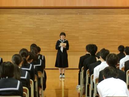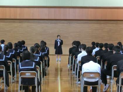 11日(月)学年集会・解団式【2学年】 公開日 2024/11/11 更新日 2024/11/11 2学年 先日実施した金沢校外学習の解団式を行いました。 【写真上:代表生徒の振り返り】 【写真下:新聞づくりについて】