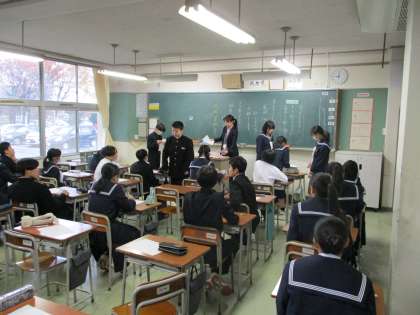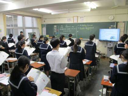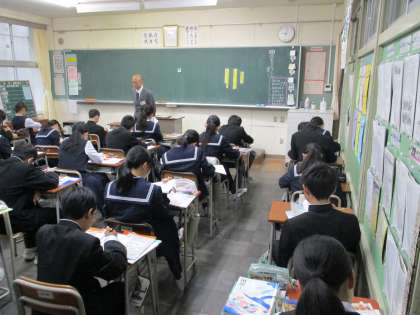 1年生の授業の様子を紹介します。 【写真上】:書写 【写真中】:英語 【写真下】:理科