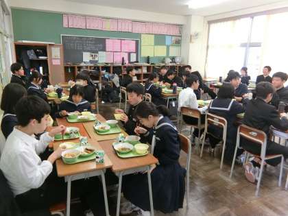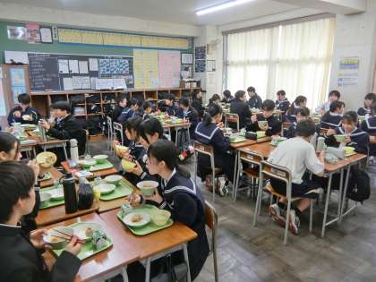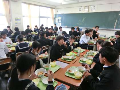 給食委員会の企画・運営で、クラス内でメンバーと隊形を変えて給食を食べました。