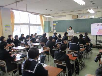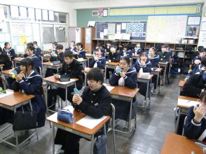 1年生は、歯科衛生士の方から正しい歯磨きの方法や虫歯や歯周病について教えていただきました。ミュータンス菌の動きを動画で観たり、実際にフロスを使ってみたりして口腔ケアの意識を高めました。