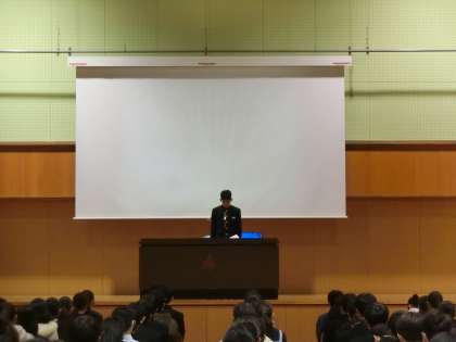24日(火)意見発表 公開日 2024/12/24 更新日 2024/12/24 東部中学校の様子 受賞報告会の後、意見発表を行いました。 各学年の代表生徒から、2学期の振り返りを発表しました。 【写真上:1学年代表生徒】 【写真下:2学年代表生徒】 【写真下:3学年代表生徒】