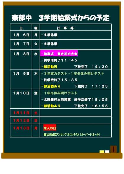 3学期当初の予定
