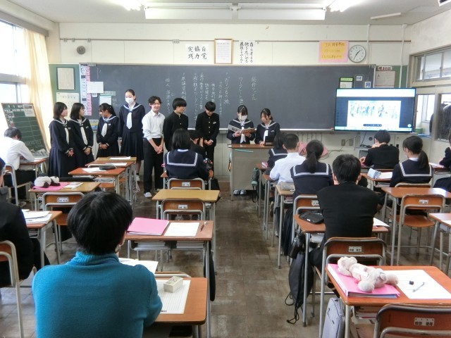 3日(月)学びの様子【2学年】 公開日 2025/02/03 更新日 2025/02/03 2学年 修学旅行事前学習(平和学習)の様子を紹介します。各クラスの修学旅行実行委員が『おりづるの旅』を読み聞かせ、折り鶴の意味や鶴を折る意味を伝えました。また、スライドを見ながらワークシートを進めました。