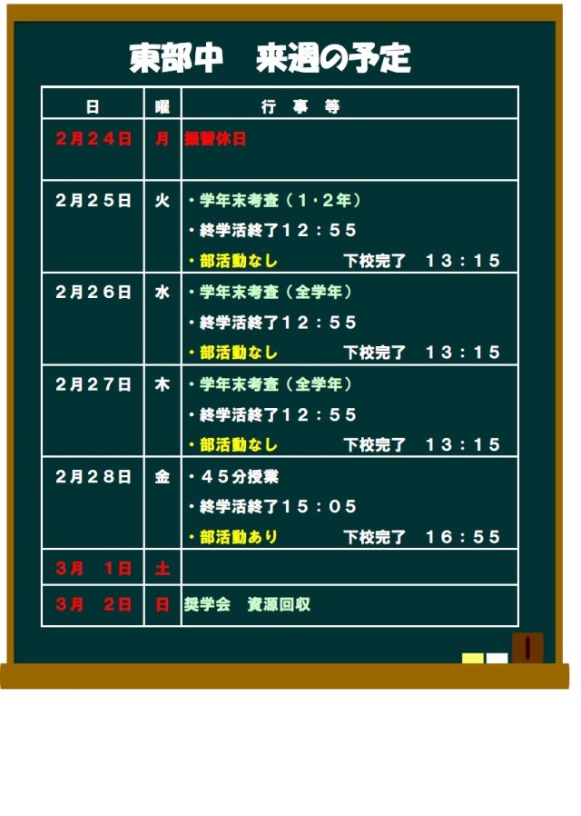 来週の予定