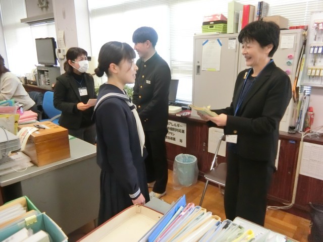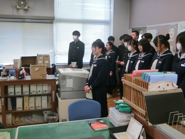 12日(水)お世話になった先生方への感謝【3学年】 公開日 2025/03/12 更新日 2025/03/12 3学年 1限開始前の職員室で、3年生の代表生徒がお世話になった先生方へメッセージを渡しました。とても素敵なプレゼントでした。
