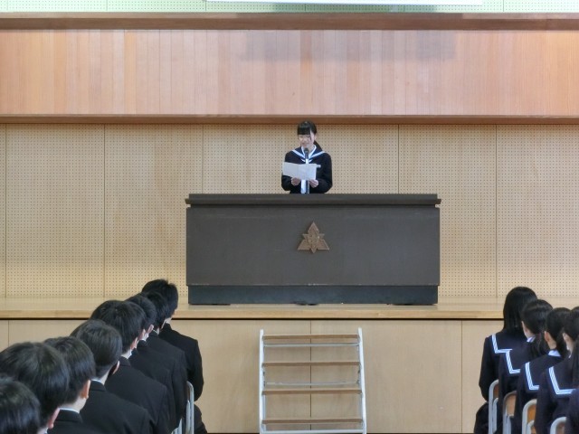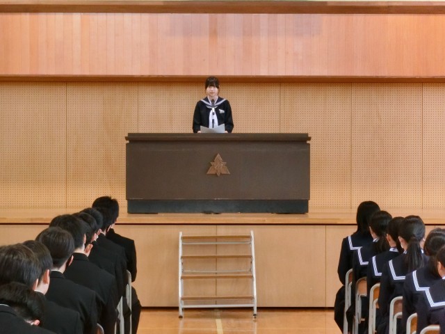 各学年の代表生徒が1年間を振り返って、意見発表をしました。