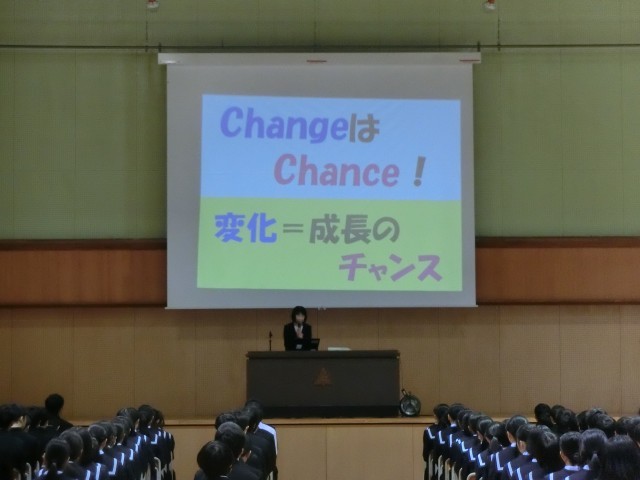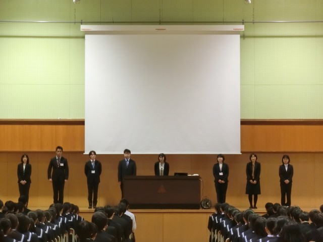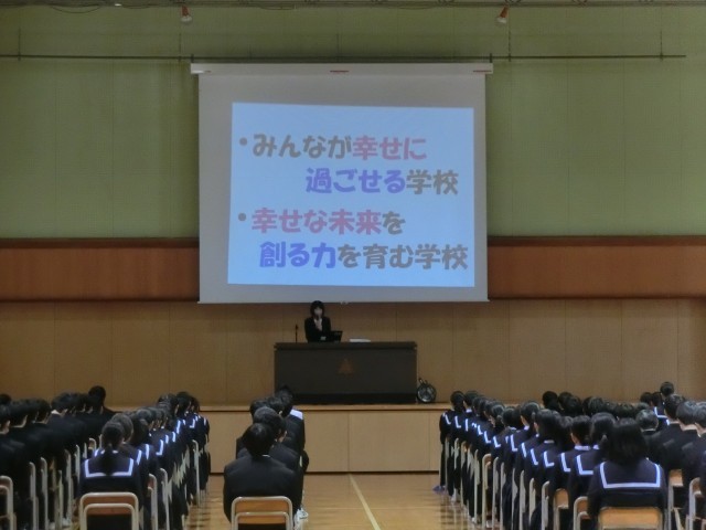 8日(火)着任式・始業式 公開日 2025/04/08 更新日 2025/04/08 東部中学校の様子 4月から新たに10名の教職員が本校に着任されました。始業式の式辞では、変化=成長のチャンスであること、幸動(自分も周りの人も幸せになるような言動・行動を行うこと)をお話されました。