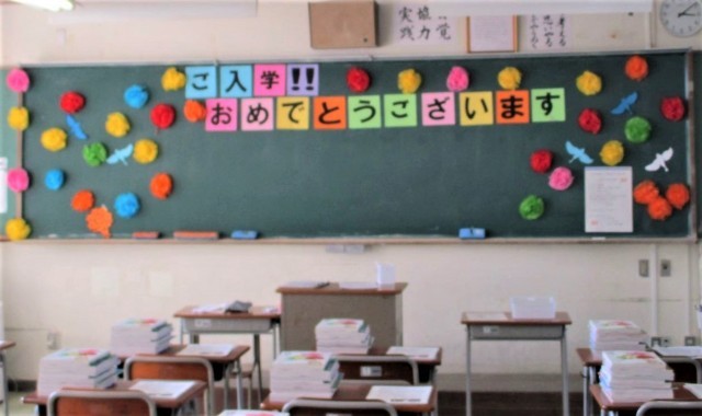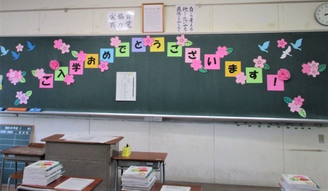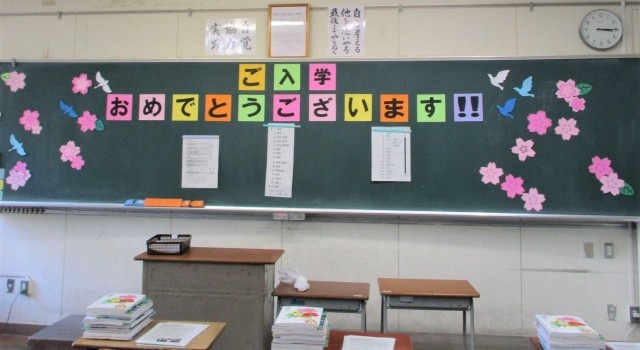 2年生が教室や廊下の飾り付けや教科書等の準備を行ってくれました。