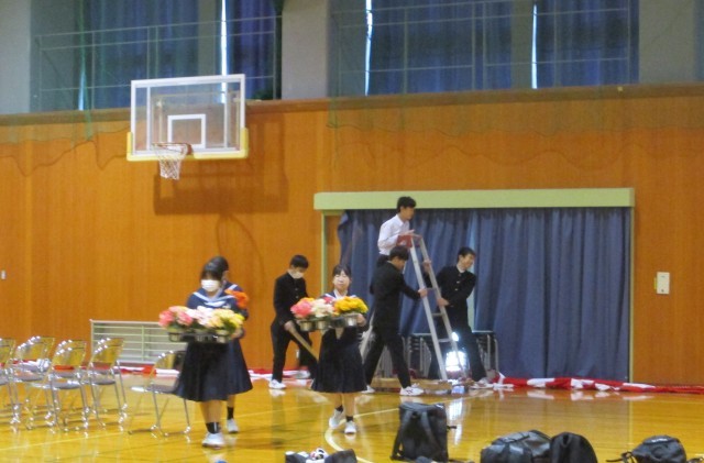 10日(木)3年生 式場の後片付けの様子 公開日 2025/04/11 更新日 2025/05/06 3学年 入学式後、3年生が準備した体育館の後片付けを協力してすばやく行ってくれました。3年生の皆さん、お疲れさまでした。ありがとう。