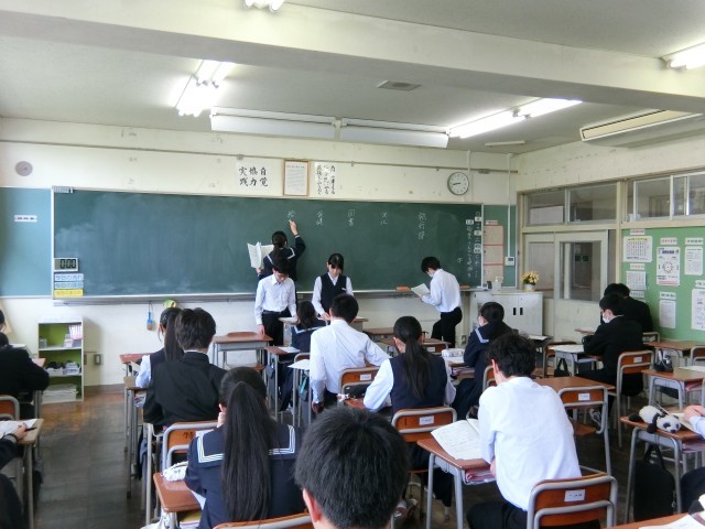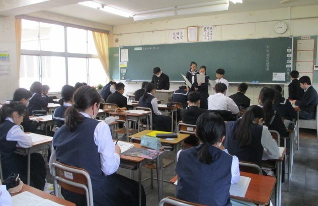 生徒総会に向けて、執行部および各委員会の代表生徒が活動計画案を学級で説明しました。