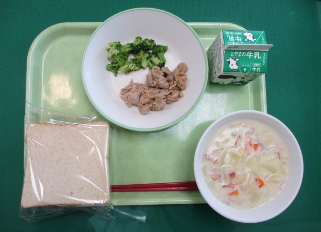 22日(火)今日の給食 公開日 2025/04/22 更新日 2025/04/22 東部中学校の様子 今日の献立は、「食パン、牛乳、ポークソテー、ゆでブロッコリー、クリームシチュー」でした。 「ポークソテー」は、にんにくの風味が効いていて、とてもおいしかったです。