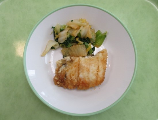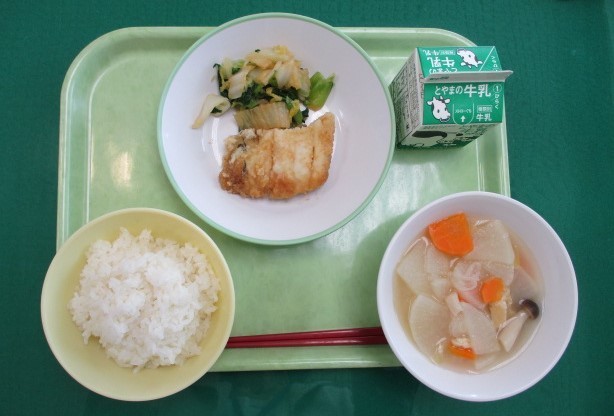 25日(金)今日の給食 公開日 2025/04/25 更新日 2025/05/03 東部中学校の様子 今日の献立は、「ごはん、牛乳、ホキのレモン味、おひたし、みそ汁」でした。「ホキのレモン味」は、ホキがふわふわで柔らかく、レモンのさっぱりとした味わいで、とてもおいしかったです。