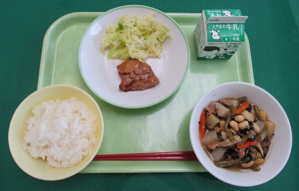 7日(水)今日の給食 公開日 2025/05/07 更新日 2025/05/07 東部中学校の様子 今日の献立は、「ごはん、牛乳、鶏肉の照り焼き、そえ野菜、大豆の磯煮」でした。 「大豆の磯煮」は、大豆やひじきの他、豚肉や人参、じゃが芋、いんげん、こんにゃくが一緒に煮込んであり、具だくさんでとても食べ応えがありました。