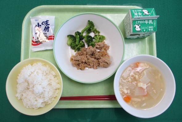 8日(木)今日の給食 公開日 2025/05/08 更新日 2025/05/08 東部中学校の様子 今日の献立は、「ごはん、牛乳、焼肉、ゆでブロッコリー、みそ汁、味付け小魚」でした。「みそ汁」には、細かく刻んだ高野豆腐も入っていて、とてもおいしかったです。