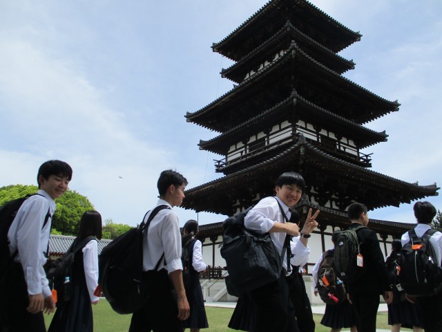 修学旅行の様子【クラス別学習】 公開日 2025/05/16 更新日 2025/05/16 3学年 修学旅行1日目は、1組が海遊館や道頓堀、2組が薬師寺や東大寺、興福寺、3組が大阪城やあべのタスカルをクラス別学習で巡りました。
