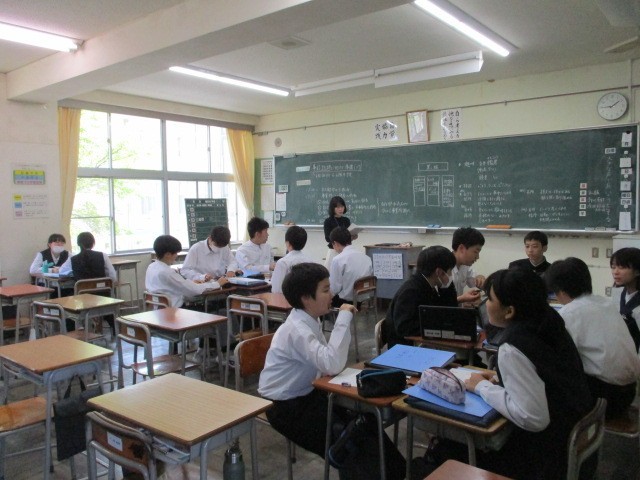 19日(月)「社会に学ぶ『14歳の挑戦』」事前学習【2学年】 公開日 2025/05/19 更新日 2025/05/19 2学年 2学年は、「社会に学ぶ『14歳の挑戦』」を、6月30日(月)~7月4日(金)に実施します。本日の5限は、事業所ごとに集まり、自己紹介カードを作成し、個人追究課題を設定しました。
