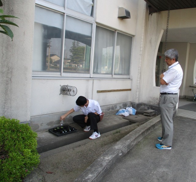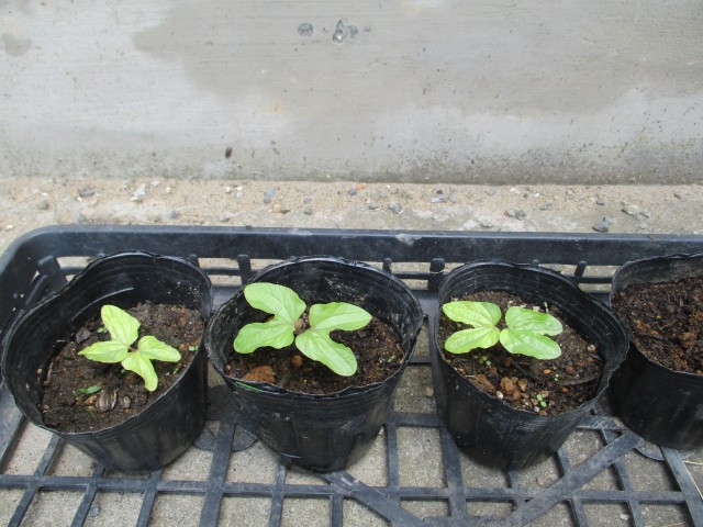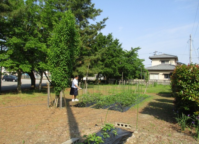 今朝も野菜や果物の苗やアサガオに水やりを行っていました。